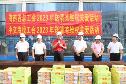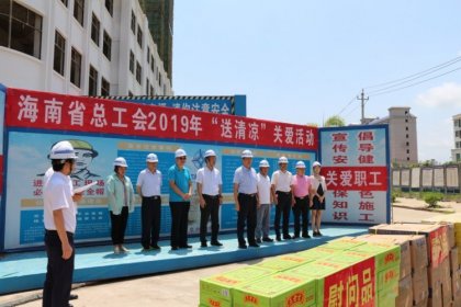 高溫籠罩下,6月21日,海南省總工會財貿工會主席呂亞平一行來到海口市新瓊片區(qū)回遷商品房(一期)項目建設工地“送清涼”,中交海投工會主席唐世連,省總工會財貿工會常委、經審主任歐陽水坤一同慰問。